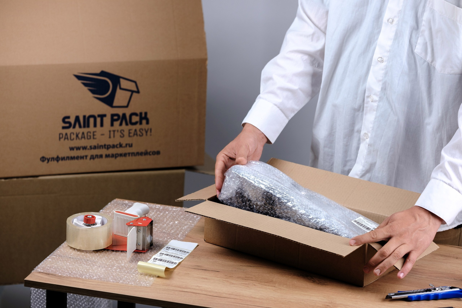 Компании SaintPack требовалось заменить на сайте стоковые фотографии на свои.